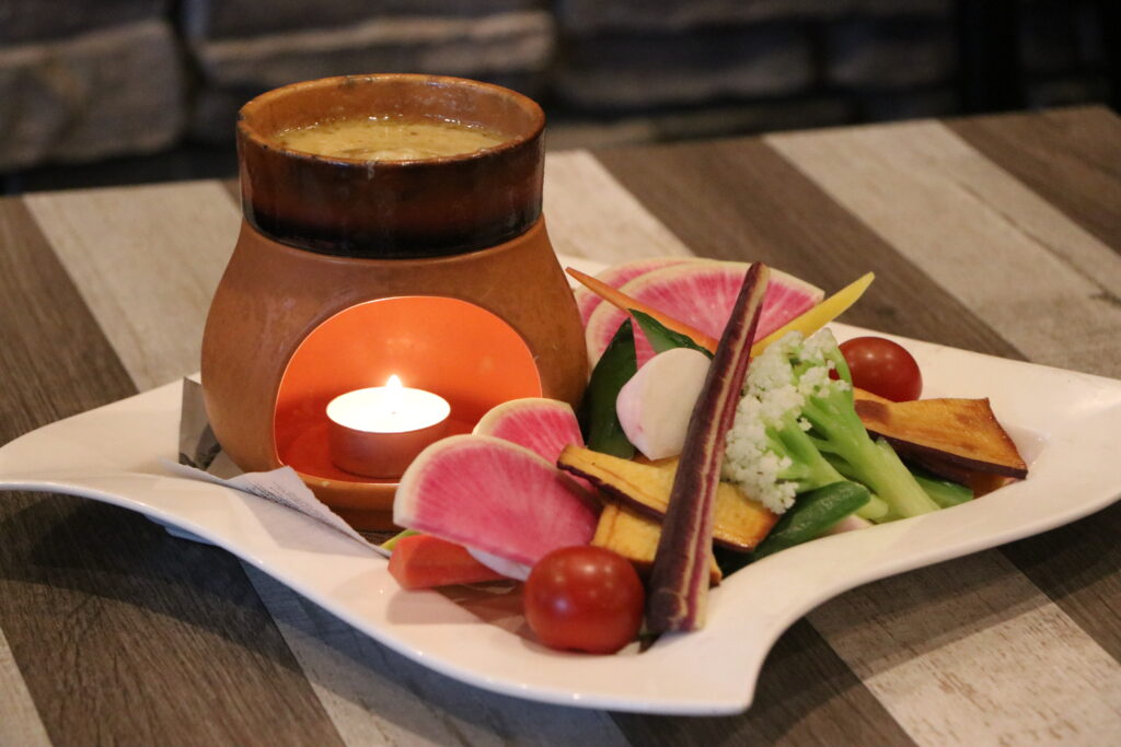 「みしまバー二ャ」とは、市内飲食店がオリジナルでアレンジしたバーニャカウダソースと箱根西麓三島野菜を組み合わせたメニューです。ブランド野菜「箱根西麓三島野菜」を、各飲食店こだわりのソースで楽しめるのが特徴で、野菜本来のおいしさを存分に味わうことができます。