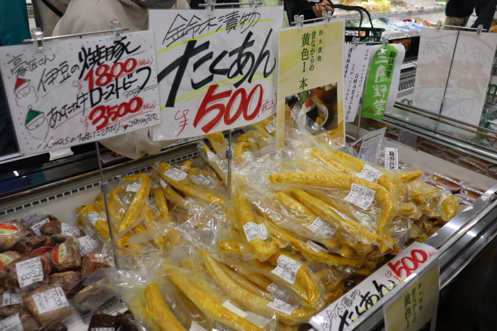 みしまるかんでは三島大根を地元漬物屋3業者がオリジナルのたくあんを販売。