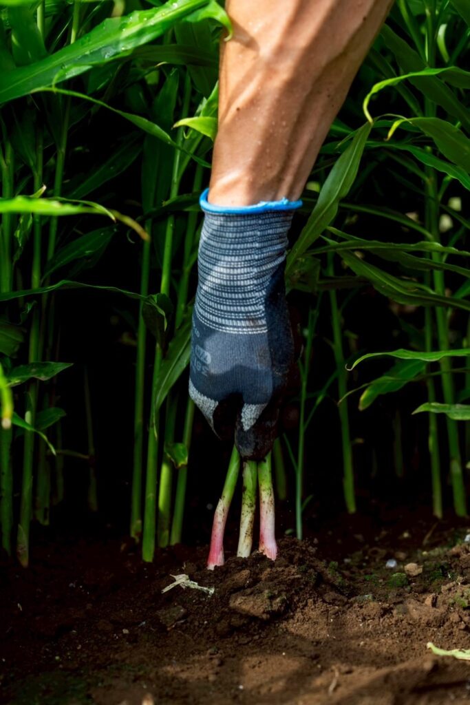葉しょうがの種である、種しょうがを収穫します。
