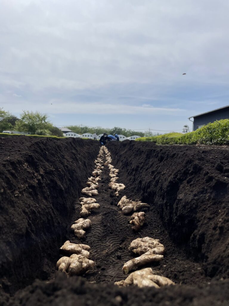 春を迎え温度が上がってきたところで種しょうがを取り出して、路地やハウスの畑へ植え付けます。