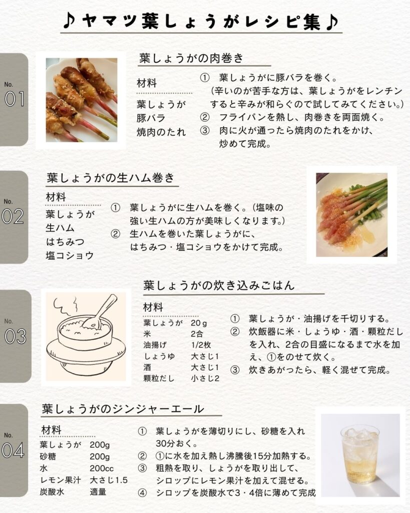 おすすめレシピ「ヤマツ葉しょうがレシピ集」PDF(1.8MB)ダウンロードはこちらから